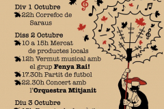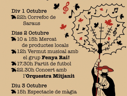 El primer dia, divendres 1, a les deu de la nit, gran Correfoc de Saraus a la plaça de l’1 d’Octubre a càrrec dels Diables de Vilabella.