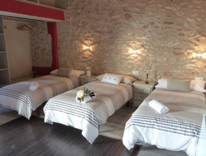 Acogedora casa rural con un suelo de cristal sobre la bodega en medio pueblo.